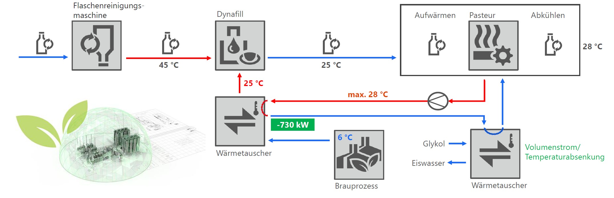 - reduzierten Energiebedarf in der gesamten Brauerei
